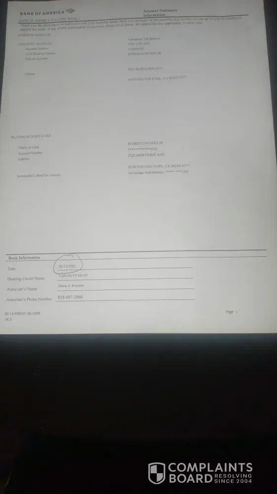 Customer Complaint Bank Of America