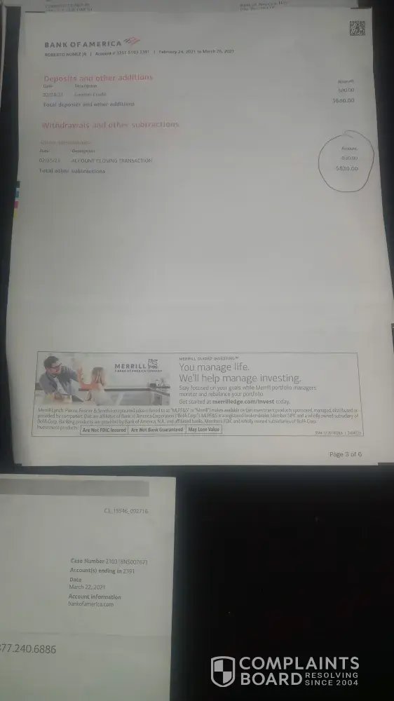 Since that time, Bank of America has held the funds and each time we've called for support - Bank of America has given us a variation of stories as to why the funds are not back in our account.