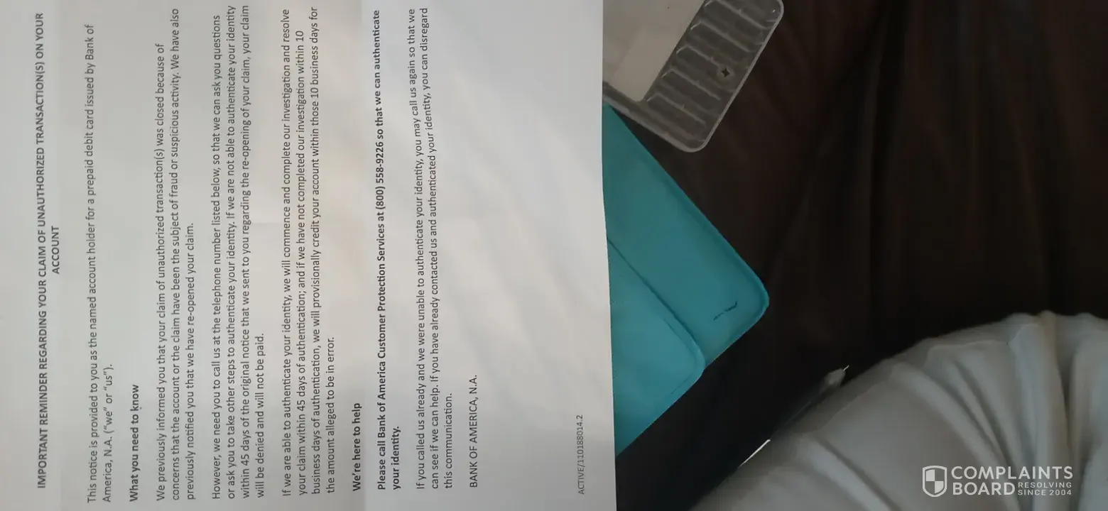 08/2021 I received a letter from boa prepaid card service stating on the amount of 12581.92 was credited to my account and the claim was closed and the credits was final.. two months later the account is frozen and the amounted listed above is taken out and left me in the new in that amount so I call boa they tell me due to all the fraud they froze accounts but once my identity has been verified it well go back normal so I did everything that boa asked fax in my ID, reports, and even went in the bank number of times to verify only for them to keep closing this claim (I wasn't under the impression was a claim ) I was told once my identity was verified the negative balance would even out to a positive the claim I did put in has been paid out and that claim closed but never received anything because all it did was take off the top of a neg balance that was never suppose to be there in the first place .I call almost every day to find out the claim. I request to be reconsidered is closed again the next day even after I was told by the claims dept.to fax in one again my ID police report and a letter stating that there is video of a female at a ATM which clearly I'm not a female and my claim will be fine but it's not as soon as I send it in it gets closed again