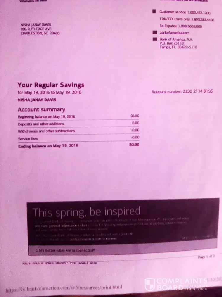 I called the [protected] number to risk closure for bank of America and I was told I had a closed savings account. I was in a process to trying to get the closure removed but they told me once it's confirmed. It permanent and they told me that bank of America has a right to closed any account without telling the customer at any given time Im going to be banking with synovus bank and they told me it's very rare why a bank would tell me that because every bank has to notify a customer about any closed account and what the better reason is to why and better explanation of what can be done in order to move forward. This bank needs to change it's banking rules and regulations and customers service. there too Stringent on customers and if they keep this up there going to have no customers and go out of business soon, if this keeps up. I'm going to be going with Wells Fargo too not yet but soon. Wells Fargo may be going through struggle with scandals but they have a much better customer service rating. They have 4 out of 5 stars and everywhere BofA have 1 to none this needs to change and I hope the CEO of whoever is over this take takes accountability for it.