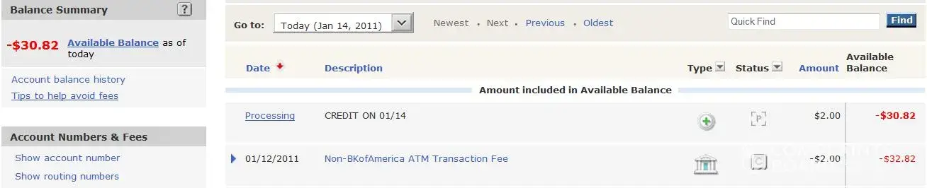 Agatha: I see that the available balance in your account is overdrawn by $30.82.