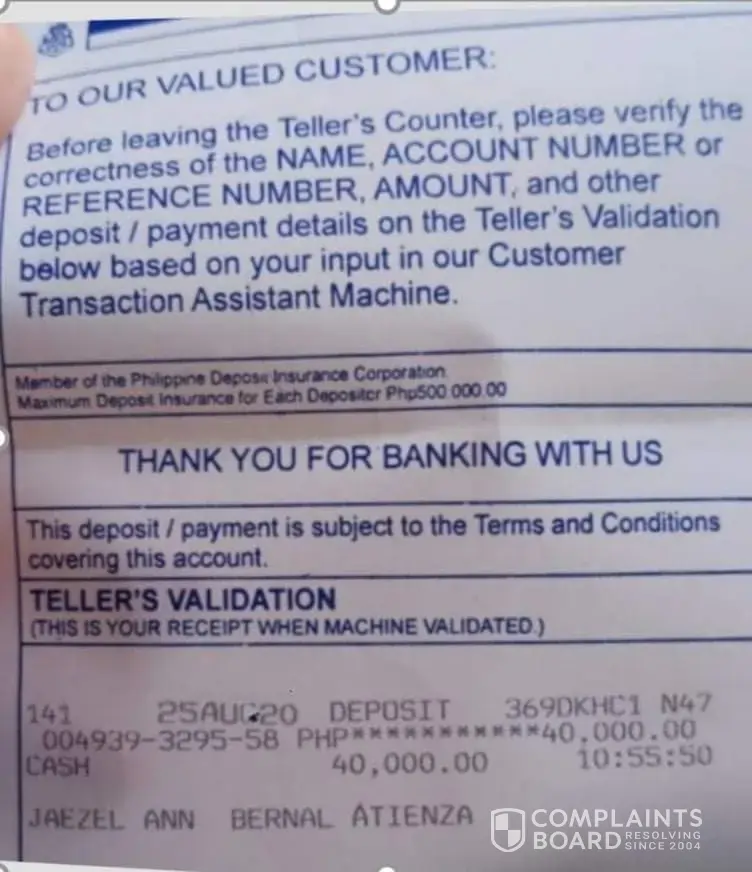Hi my name is Jaezel Atienza. I just want to inquire about the transaction made last August 25 and October 15, 2020. There's a deposited amount on my account ([protected]) but it never gets to my bank. I keep on calling the BPI about this, they cannot give me a definite answer regarding this matter. I know you can track this issue, I attached the transaction slip and all the details were there. Here is my email address, [protected]@gmail.com