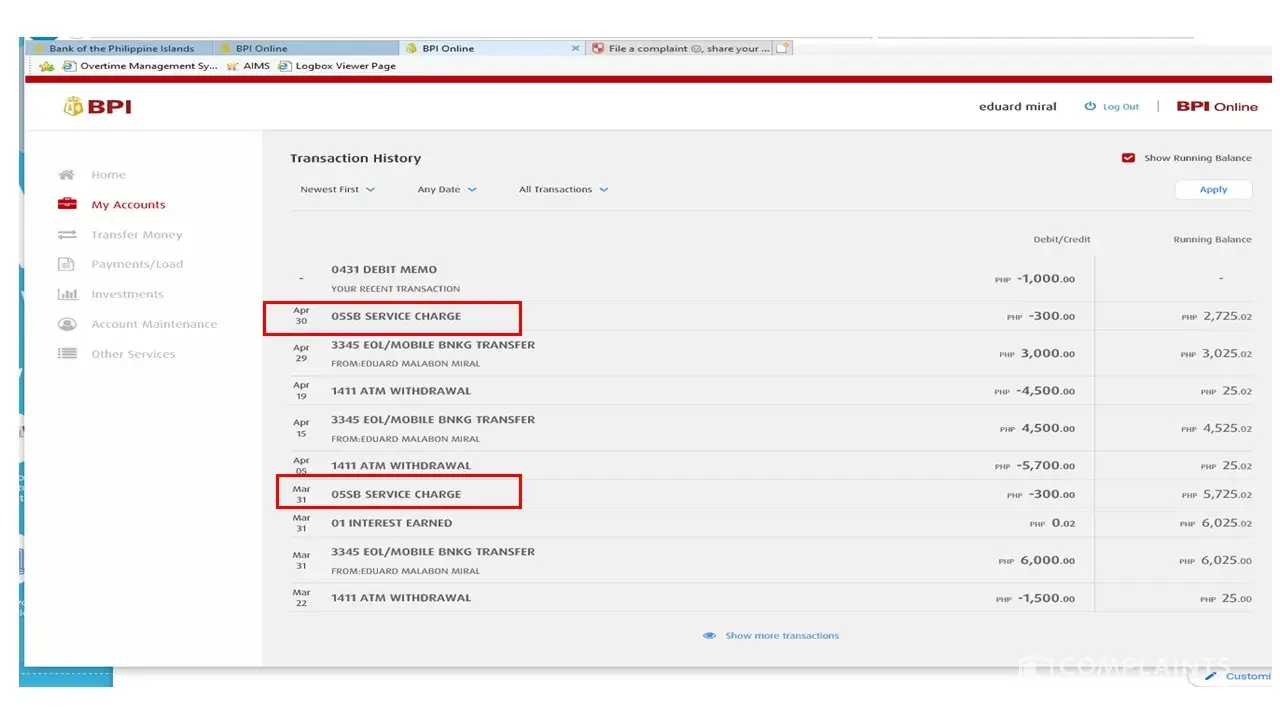 I am complaining about the poor service of bpi