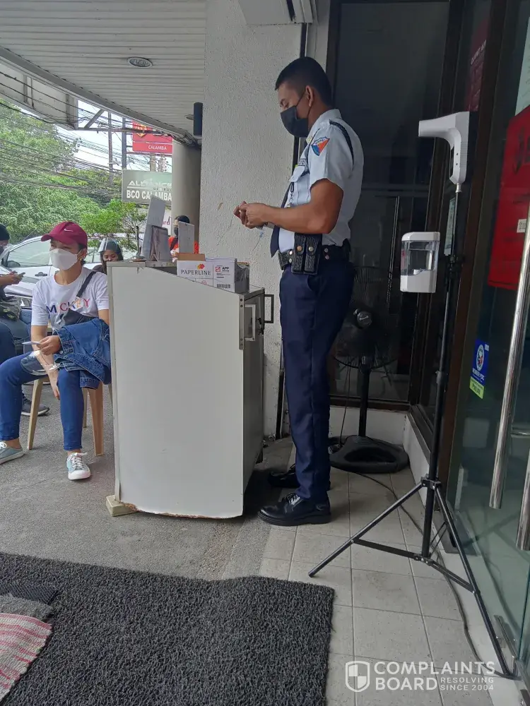I arrived earlier to the branch 30 mins ahead of time before opening. The guard gave number without even considering who arrived first. Other cx who arrived late was already assisted while I'm still waiting for my number to be called. His initial on his uniform is Sabordo RP. BPI Calamba.