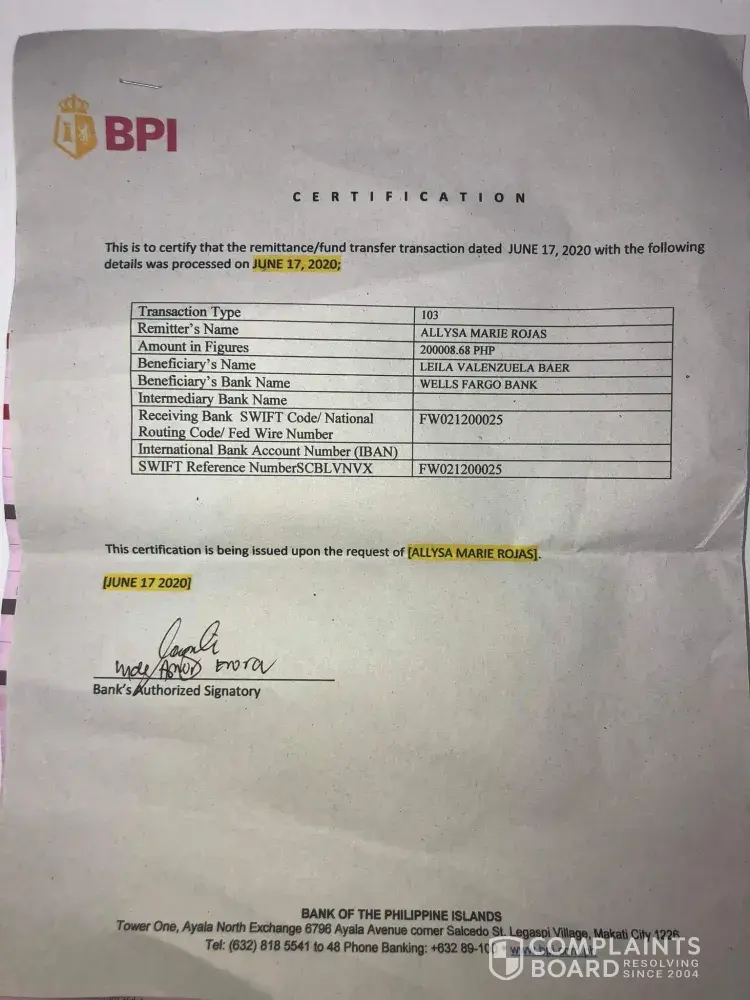 BPI ATM withdrawal complaint