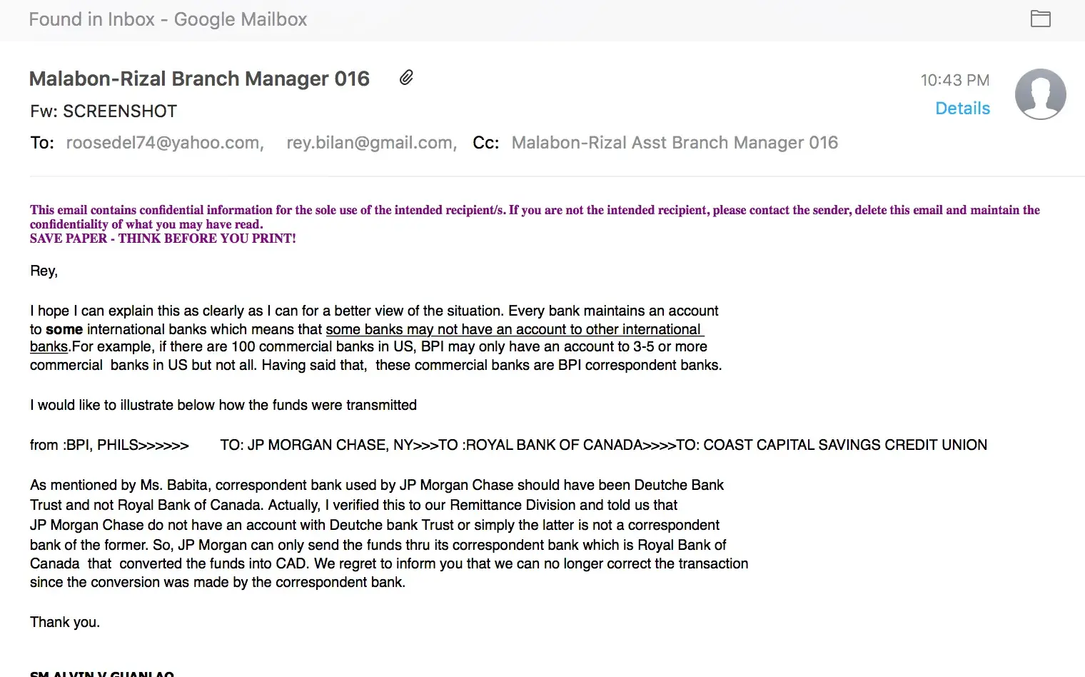 from :BPI, PHILS>>>>>> TO: JP MORGAN CHASE, NY>>>TO :ROYAL BANK OF CANADA>>>>TO: COAST CAPITAL SAVINGS CREDIT UNION