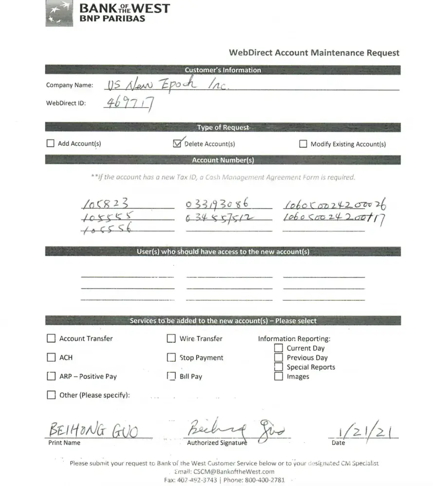 Bank of the West Customer Service/Online Banking