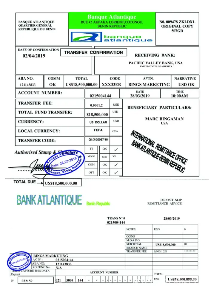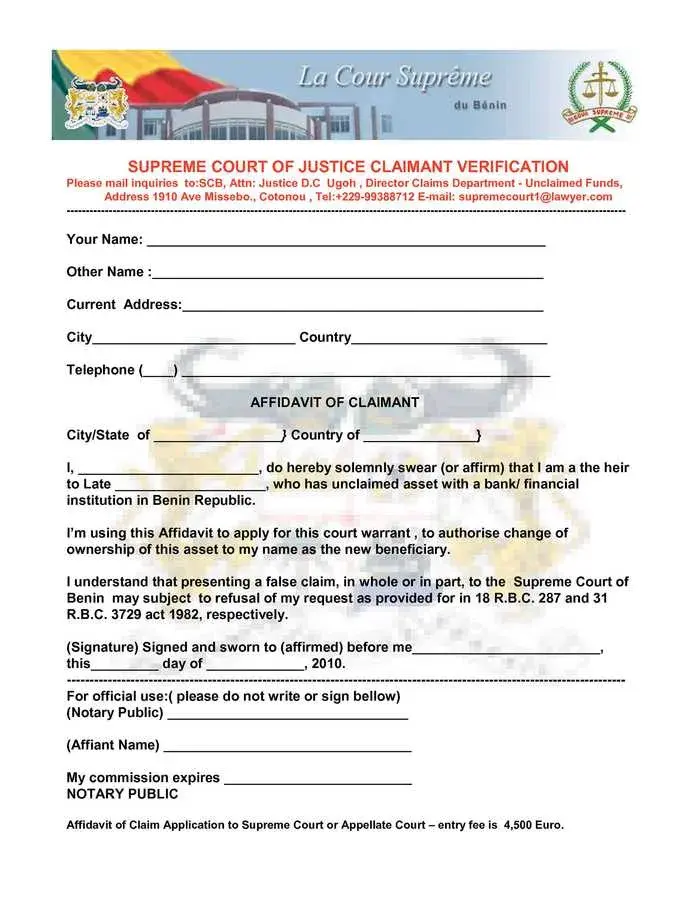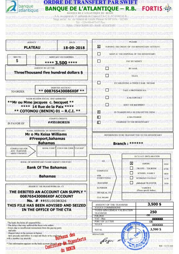 Thanks for your mail, as regard to your question if you don’t pay the fee the Court of Benin will not issue any documents to you and the Atlantique Banque cannot carry on the transfer.