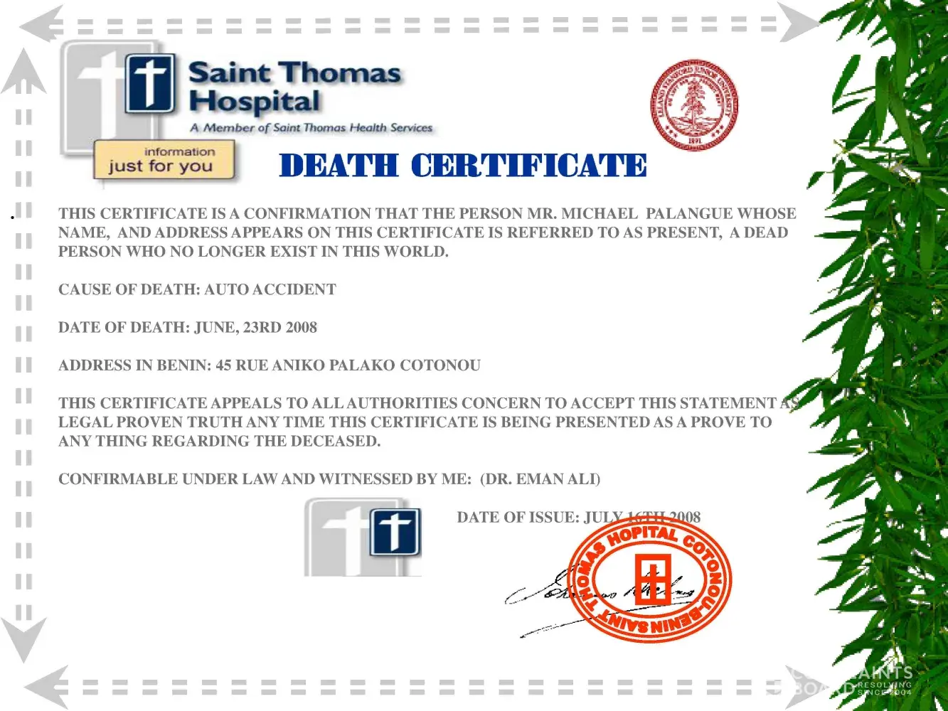 >> your information as submitted by mrs leno mfuta.