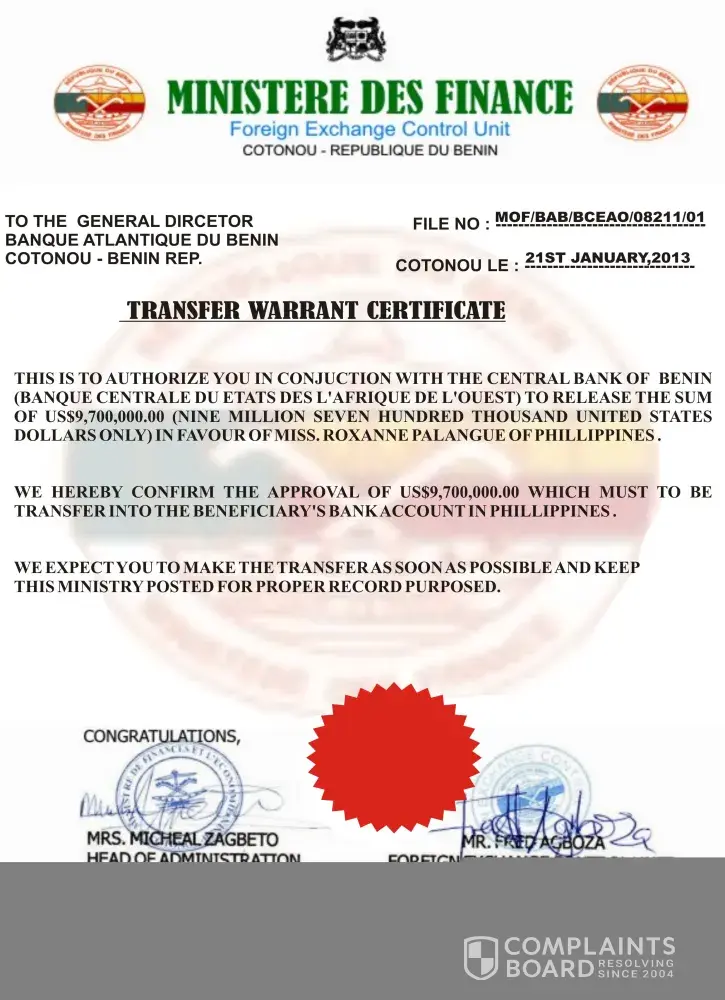 That this was the final step. Haven't been contacted in 3weeks. My emails are been blocked now after I finished all requirements.Please give me assistance. I have already paid over 90, 000 to resolve my taxes the courts the Minister of Finance the Bceao Agency and the bank were my account is located (Banque Atlantique ) also to satisfy my lawyer. Please assist!