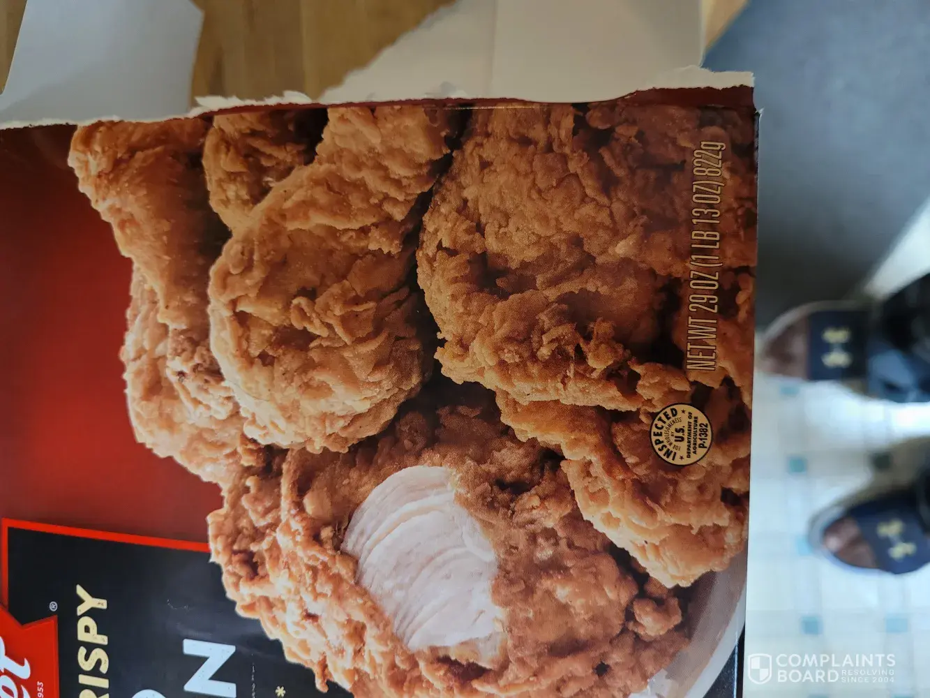 Rip-off! Ive been buying the box of Crispy Fried Chicken since I was a kid and its gone downhill ever since. My last box was 2 thighs, 2 legs and 2 globs of breaded bones of some type. Ugh, never again!