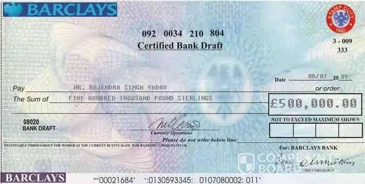 > 3 YOUR BANK DRAFT OF 250, 000.00. GBP