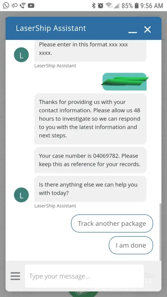Complaint Case Number with LaserShip (who supposedly delivered the book): [protected]