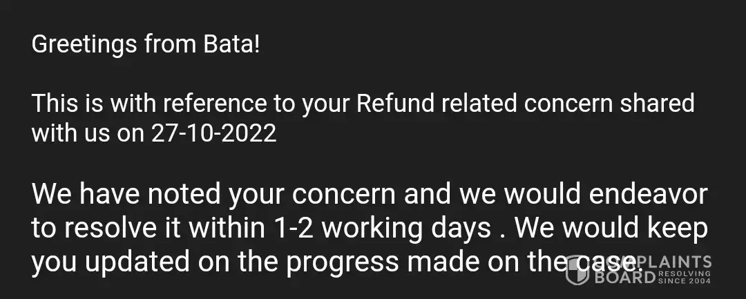 I placed an order on 30 Sept, 2022 from official website of Bata and amount has been deducted from my account. But the order was cancelled by them at their end. After calling to customer care number they said you will get refund within next 2-3 working days. It has been a month a now. I called them more than 30 times but my issue is still pending. My reference number is 392340. The customer service is just pathetic instead of solving the query they keep on saying that your issue will be resolved soon.