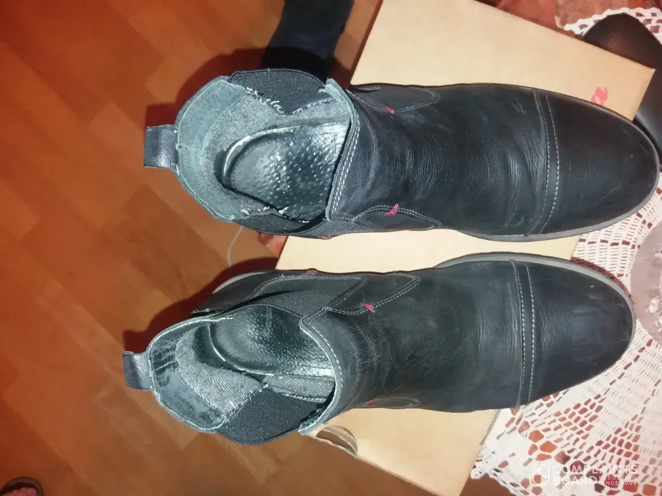 Please find atta​ched​ purchase receipt, the photo of the boots and the rejection letter.