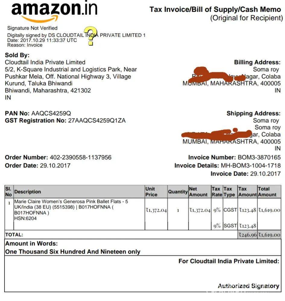 I purchased a pair of shoe on 13.02.2018 vide invoice no. cm3069170016276 dated 13.02.2018 for rs.1499/- (article name hsn code - 8516288080 edgar).
