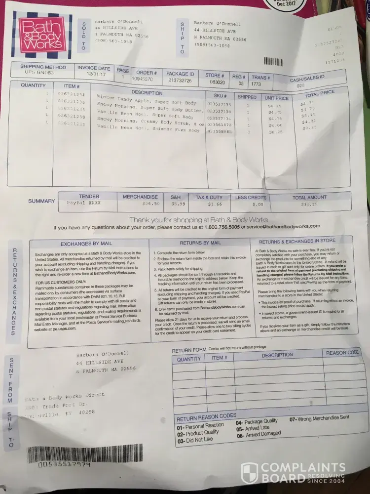 Bath & Body Works Direct Complaints Page 14 of 20