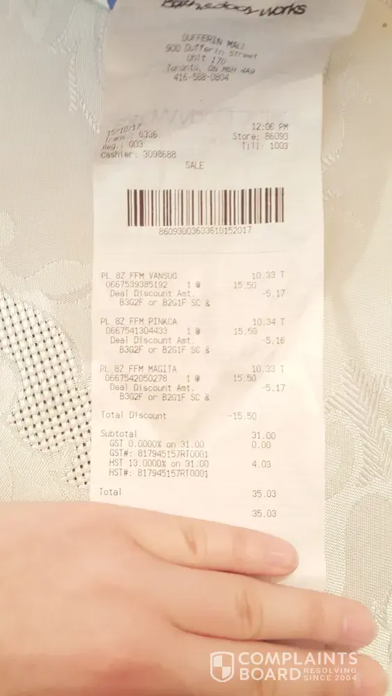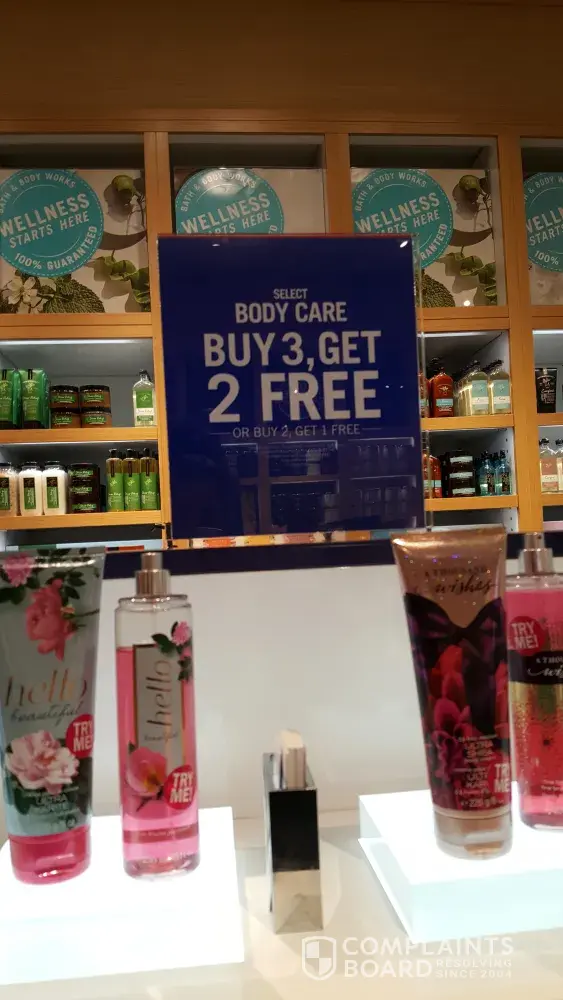 I bought 3 body sprays that were on sale, this sale sign said buy 3 get 2 for free, i have proof and receipts, know the question is why did I have to pay for 2 body sprays is the sale sign said that i would only have to pay for 1, i asked the sales lady she very rudely said that the sale consisted of paying for 2. I would like a refund.