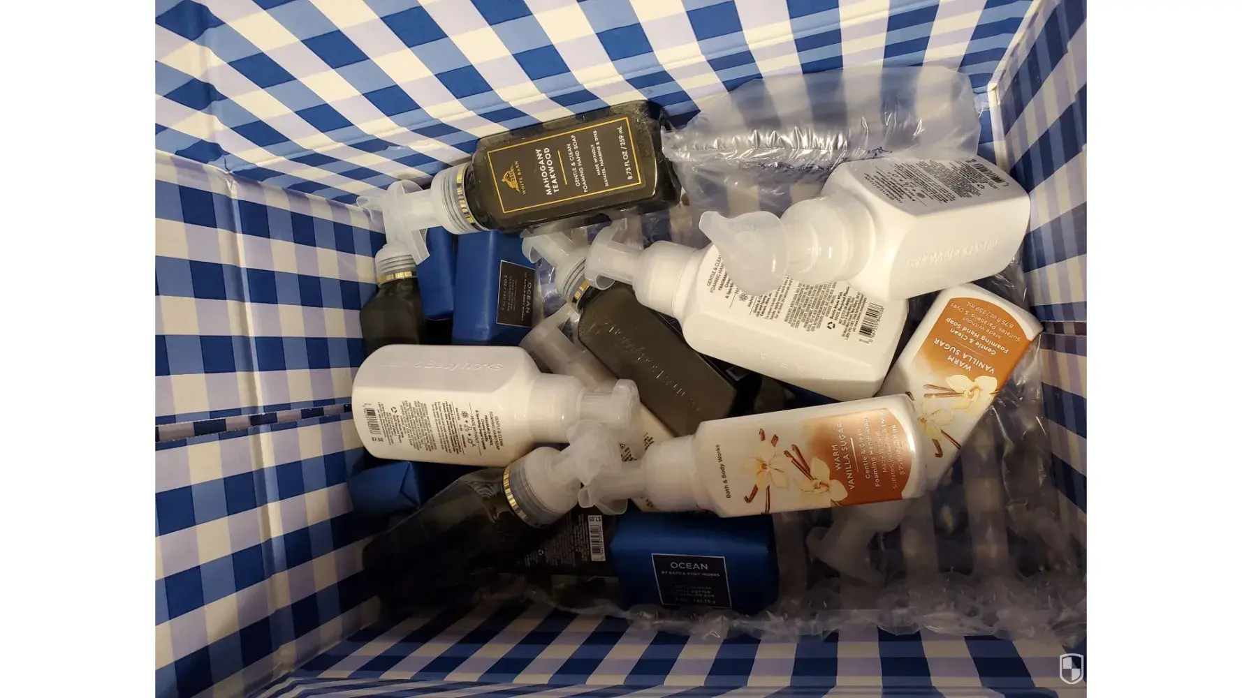 I have just received a shipment from Bath and Body Works. The package contained soaps which were randomly tossed into the package, NOT sealed, leaking and overall a disappointing mess.
