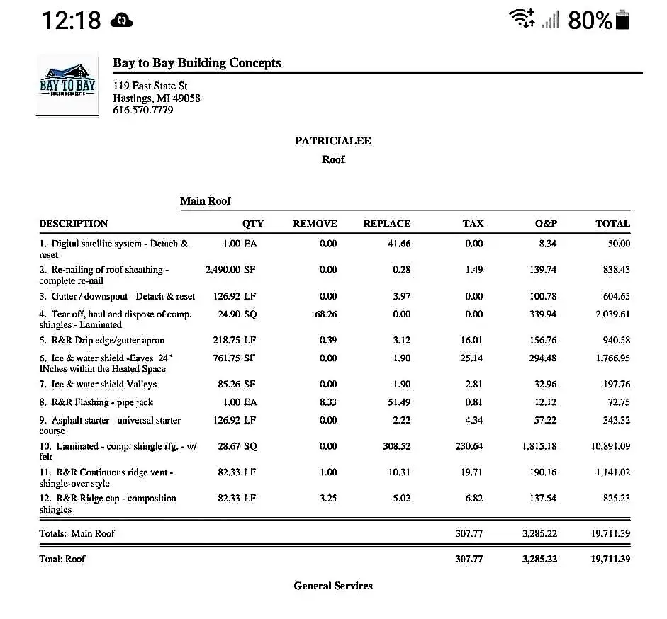 I contacted bay to bay in 2019 to give an estimated for roofing and siding issues due to hail storm