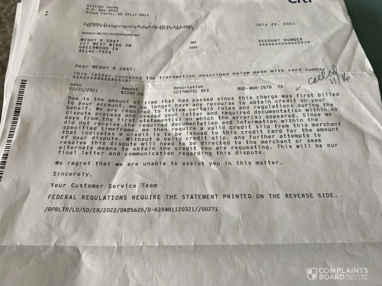 I booked at room at microtell hotel right outside of the villages florida. I reserved the room on a credit card. When I checked in I put the whole stay on my atm card. 1107.05. They were paid first day as soon as I got there. They left the entire charge on my charge card even though they were already paid! Can hotel do anything? No. Can my charge card do anything? (by the way i've called them and send them every verification of this. The. They mail me a paper saying. Sorry. Too late! Can you get ahold of anyone at cci hotel? Can you even find a valid number? No! They are a ripoff third party to steal your money! In the meantime I keep getting charge card statements ranking up late fees. Now trying to ruin my perfect credit!