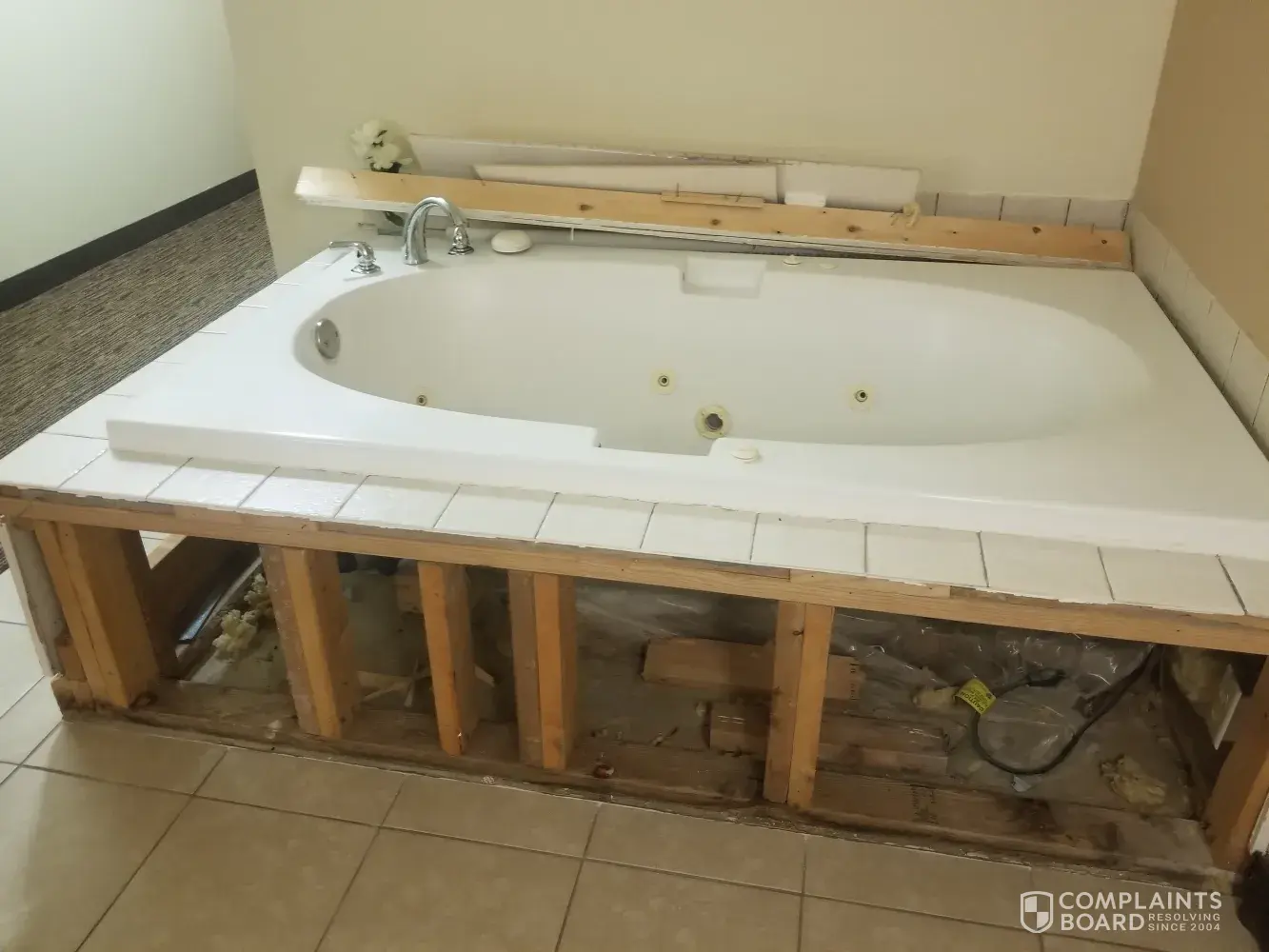 9 IN ROOM 103 debris all over the room from a torn up hot tub. TOOK PICTURES (attached)