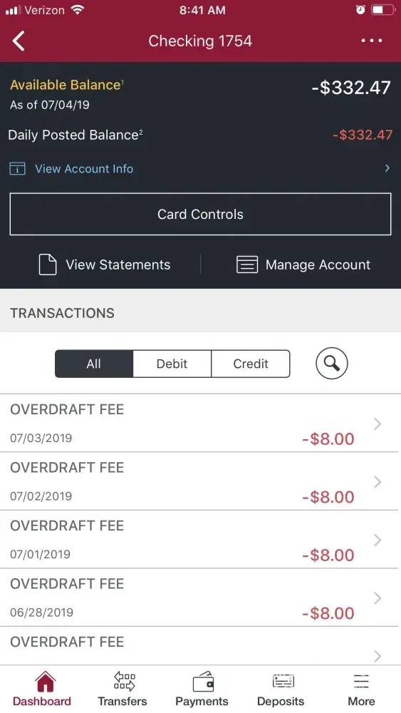 I am fed up with this bank, my payroll check is direct deposit, i knew i had an overdraft fee that was coming out of my check on 1/19/2018, it was something i could not help, my deposit was $1559 and my overdraft was $661 balance left $898, i had emailed them and asked them to look back at my account because on 1/23/2018 i recieved an email stating i was -$343, i never made any big purchases from the 19th til the 23rd. The lady responded after your deposit and overdraft was paid your balance was $514, how is that possible!? I told them to go back and redo their math because they are wrong, im waiting for their response, add me to the lawsuit, im tired of how this bank treat their customers, they refunded $36 bringing the account to-$307 only for the next day the balance was back to -343, it makes no sense how they process debits, your balance reflected is never what is posted on the app, they need to be brought to justice ASAP