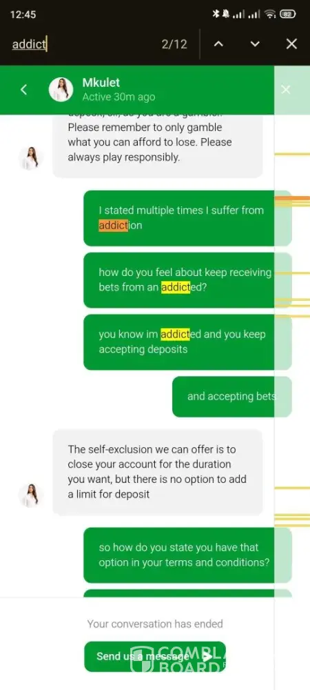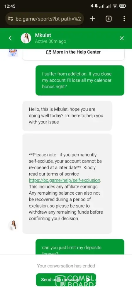 On 24th February I had a running claim on bitcointalk forum against BC.Game, and you can clearly state that one of the mods even requested them to close my account due to gambling addiction.
