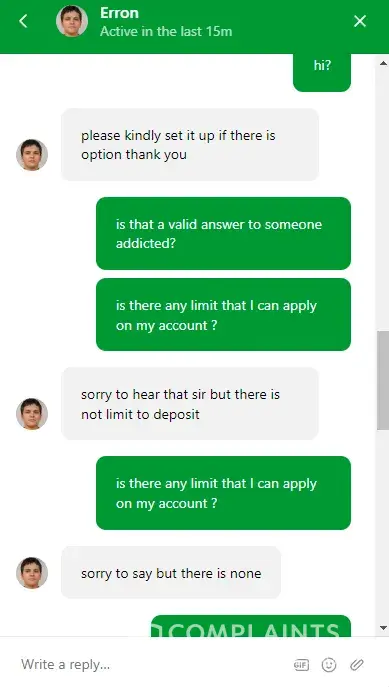 I didn't intend to close my account because I had earned calendar bonus that I could redeem in next weeks, but I tried to limit gamessessions, limit my deposits and limit my stakes as you can see in screenshots.