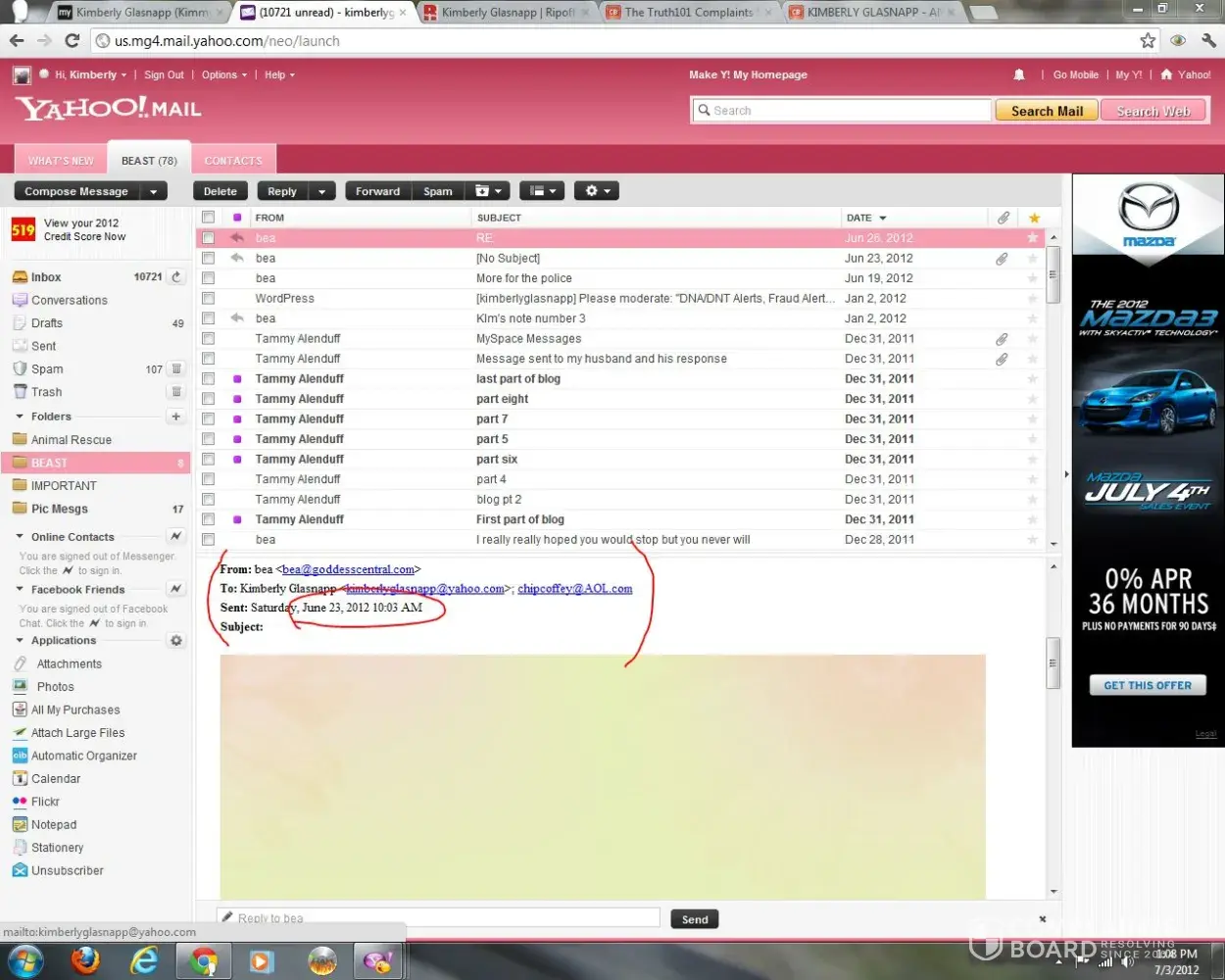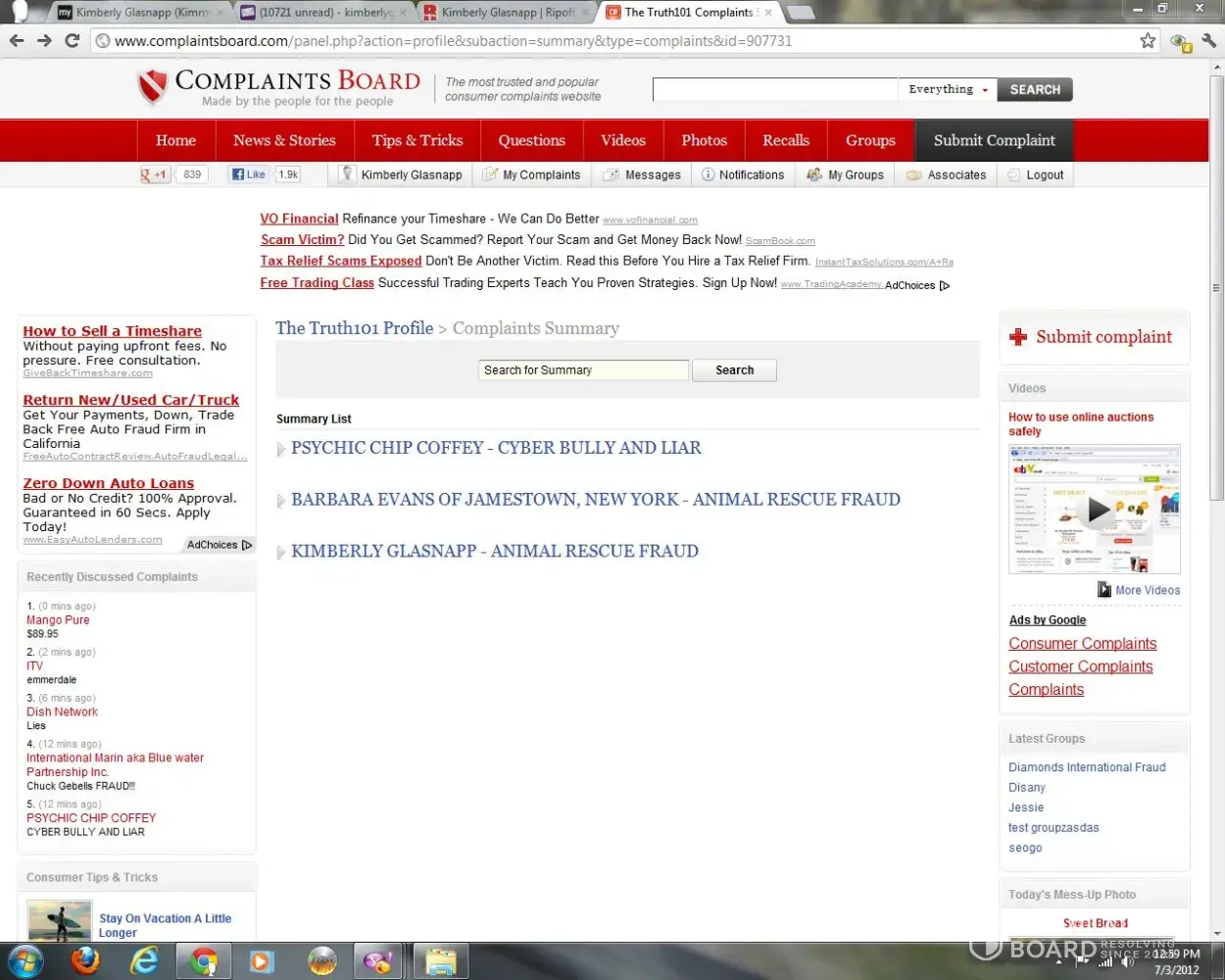 This consumer report is to chronicle proof of Beatrice Marot's more than twenty year history of burning innocent, vulnerable people who think she's a real psychic, to prove she's nothing but a mentally deranged cyber bully and cyber stalker, victimizing any one she has a problem with, and she is constantly having some problem wirth some body. For one thing...