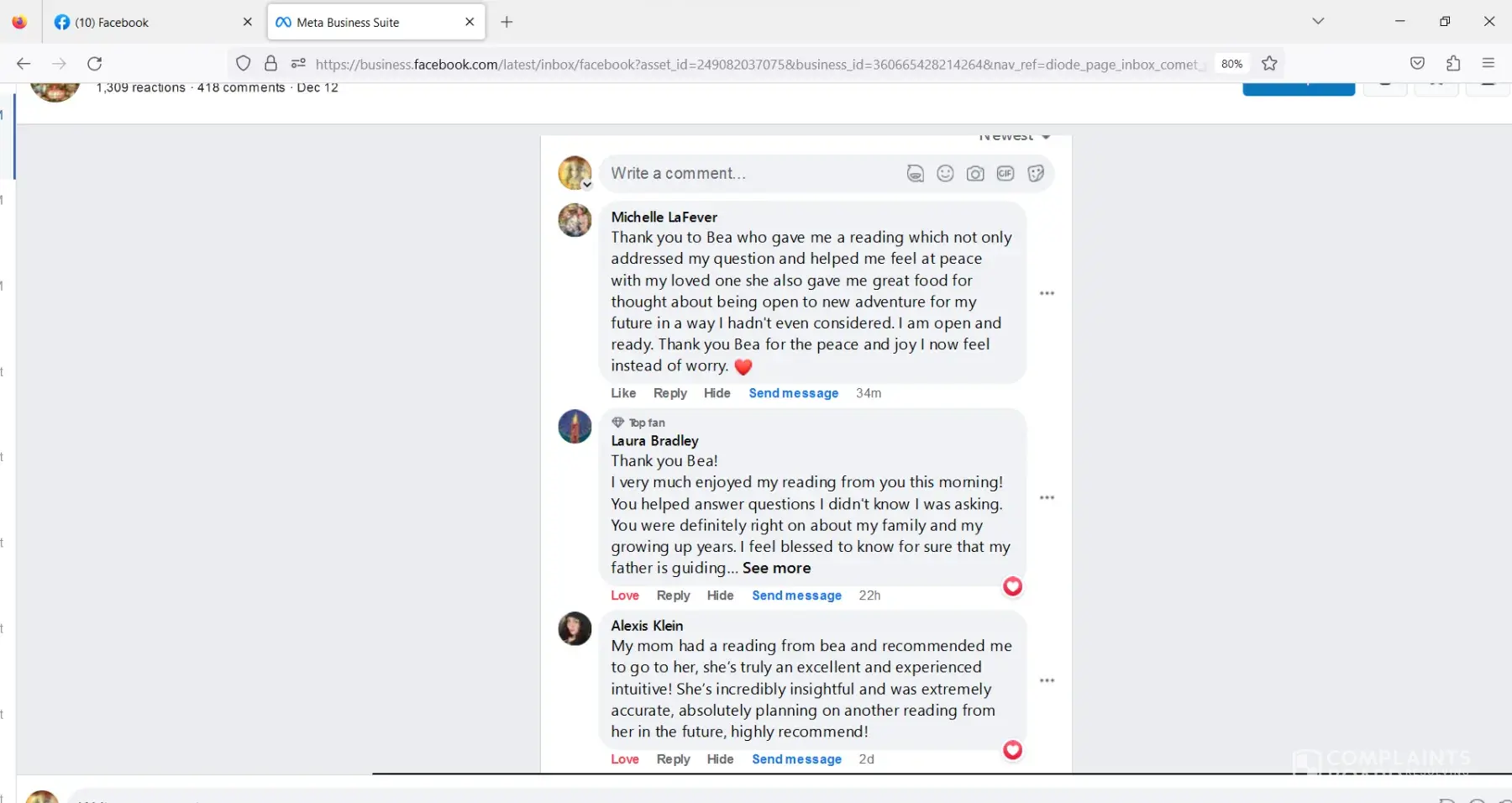 This woman is a scam artist. She not only takes people's money making them select "gift" through PayPal so she can continue to collect bogus disability without claiming any income, she complains about her problems during the entire "reading". Beatrice Marot is a sociopath and a dangerous woman, do not in any way get involved with her, just google her name!