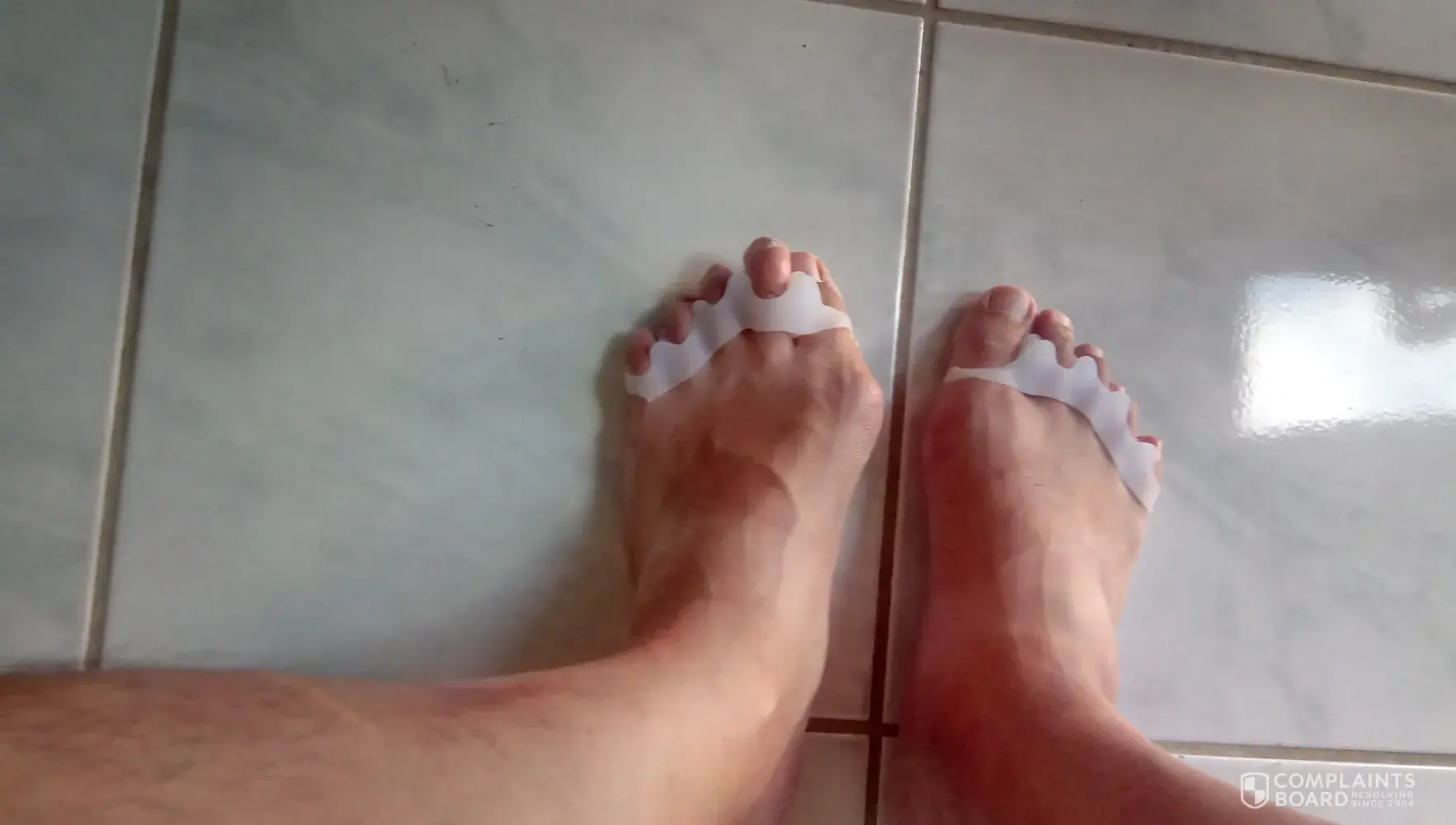 Order #9780 on jan 14, 2021 under the impression it would fix my pronounced bunions as advertised, during correspondence with customer service agents david & alex I also learnt this product was meant to lessen pain in foot conditions & could be worn day & night. The opposite happened. My toes became more painfui! I later discovered blisters had developed between my toes.. After more than a month it still looks / feels like it's still healing.
