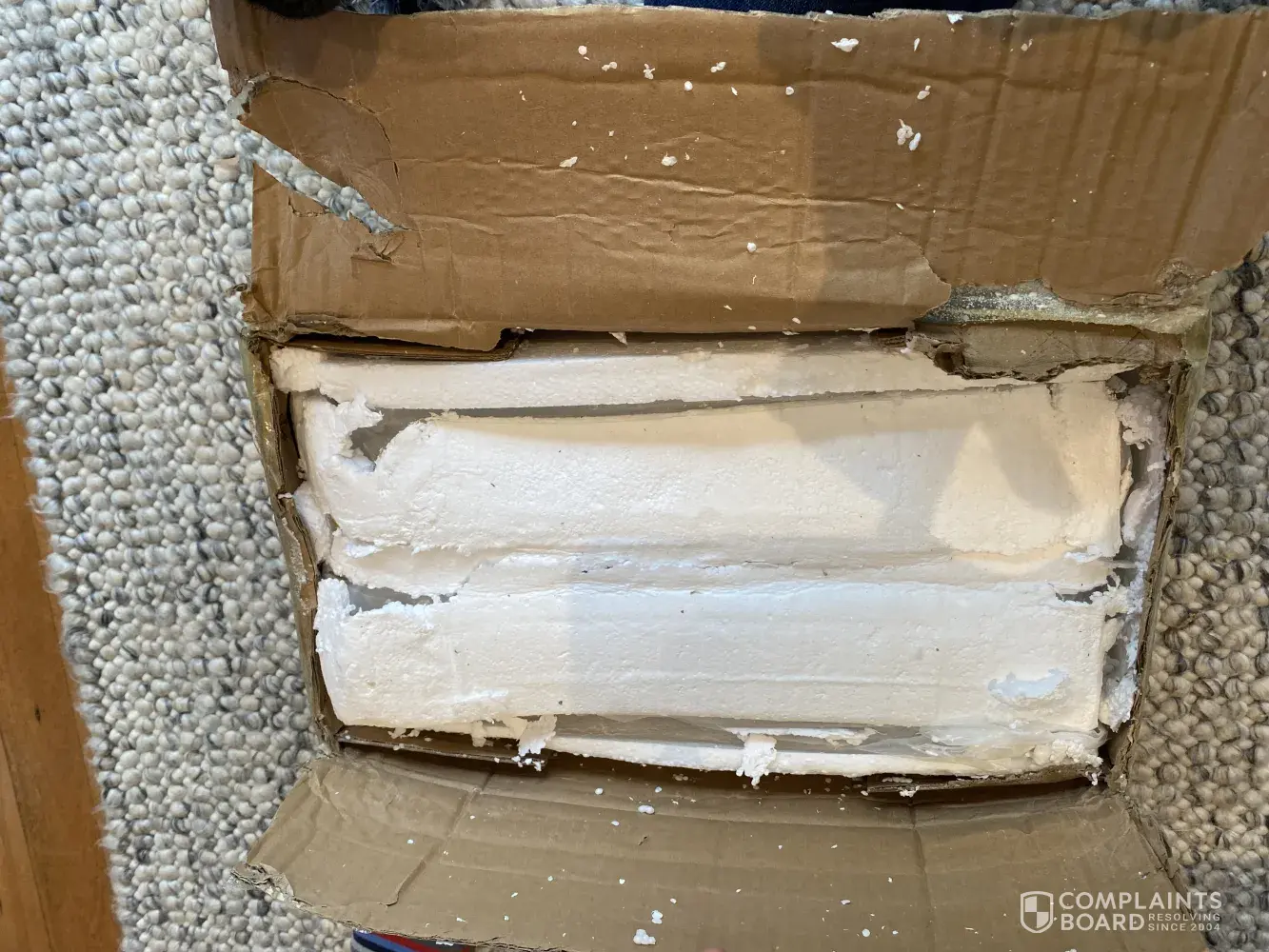 I paid AUD $900 for a lamp with a marble base, long arm and chrome lampshade. This was purchased in July21. The marble base arrived on 24th Sept (3 months later) broken on all edges, as well as with several grooves and marks all over. It was not sufficiently packaged. It weighs over 30kg, and was packaged in a paper-thin box with 1cm of polystyrene. The lamp arm and lamp shade has not arrived.