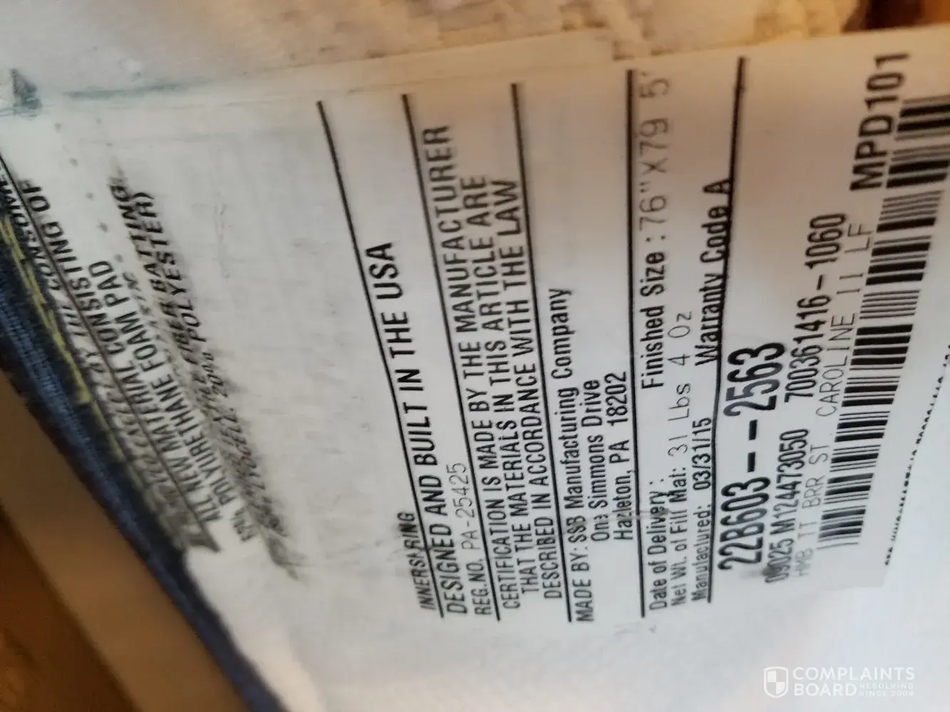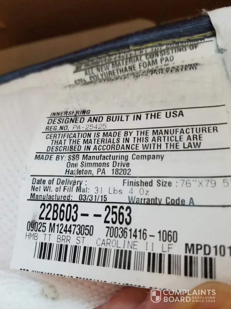 Harmony mattress complaint