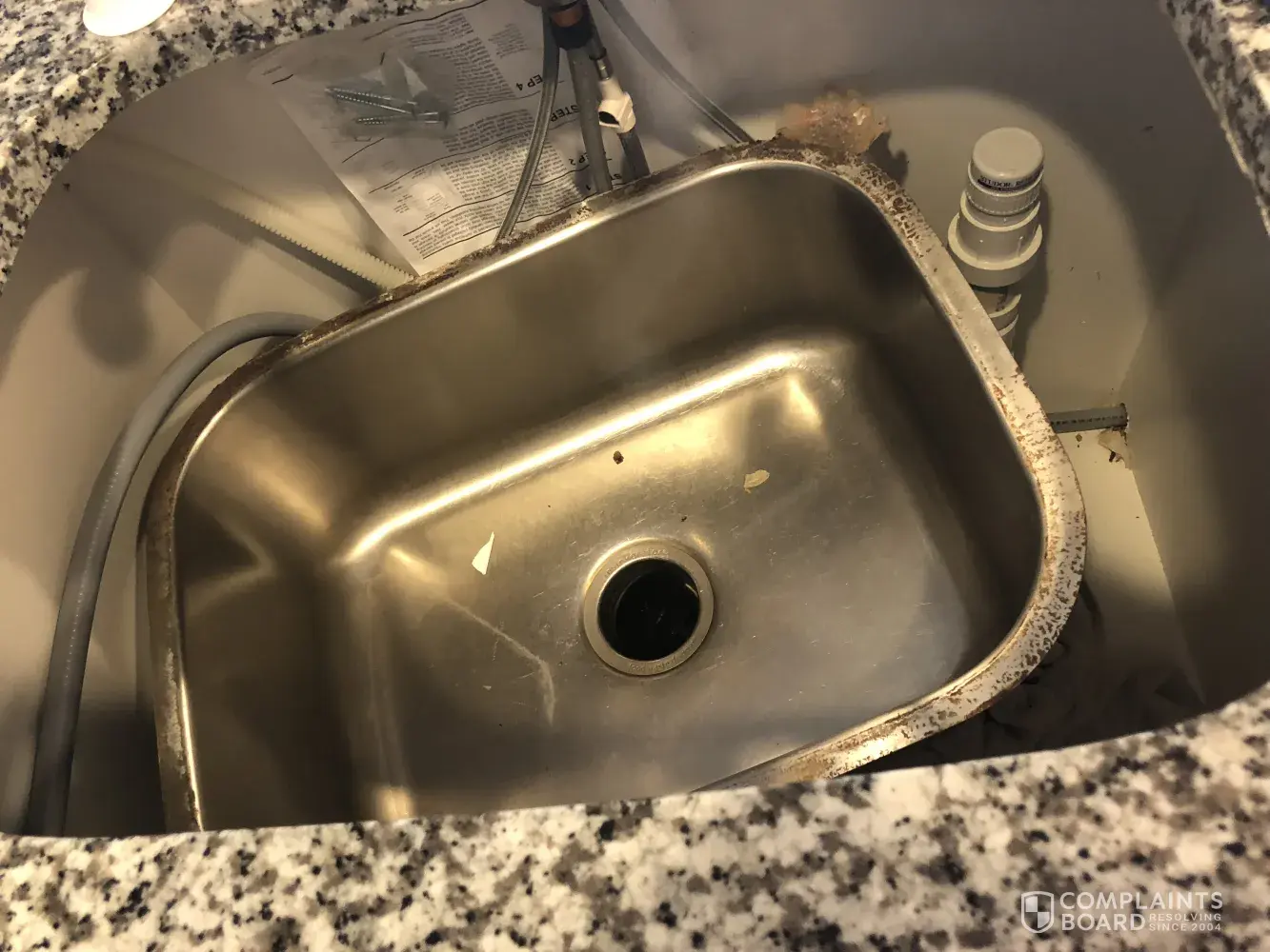 We purchased our home almost 3 years ago;however, the sink was definitely put in as a shotty job! Sinks are inserts but apparently the installer thought that you glue it under the sink with silicon glue! Needless to say, I was fixing easter dinner. The dishwasher was going and I had just went to drain something and the sink fell down into the cabinet. Water from the dishwasher ended up all over my floor and cabinet. My wood is now turning up due to the amount of water and ruined. I am beyond furious! I have photos showing the silicon. This completely ruined our easter gathering and the nearest hardware store (lowe's) was closed for the holiday! I forgave the fact that the sidewalk turned up and no one ever called me back to redo, I forgave the fact of the shotty job with seeding that was done (my husband redid ours) while others continued to try to contact you to redo theirs, I forgave that my upstairs is slightly sloped and the installer shaved the bottom of the bathroom doors to make an illusion but now this is yet another issue and this time I want it fixed properly and my flooring around it replaced! This didn't affect just one person but many! This was an easter dinner in which was suppose to be a joyous occasion but yet I couldn't complete the meal! This is unacceptable plus, sinks are inserts not to stick with silicon under a sink! Is this the type of operation beazer holds? We came from another builder hearing only good things about beazer homes and now I am not feeling that the reviews and word of mouth is true! Please contact me immediately to rectify!