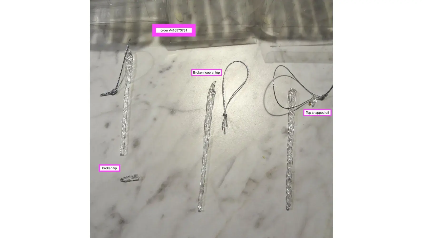 Desired outcome: REFUND for damaged icicles