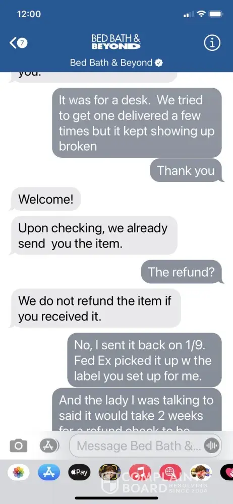 Return and refusal of BB&B to process refund CASE #[protected]