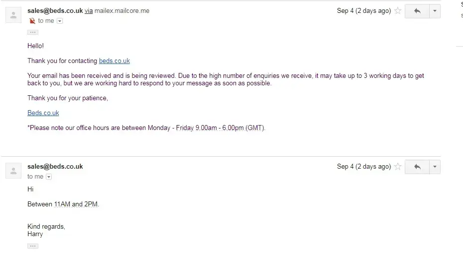 I purchased a bed and mattress from Beds.co.uk on the 16th of August.