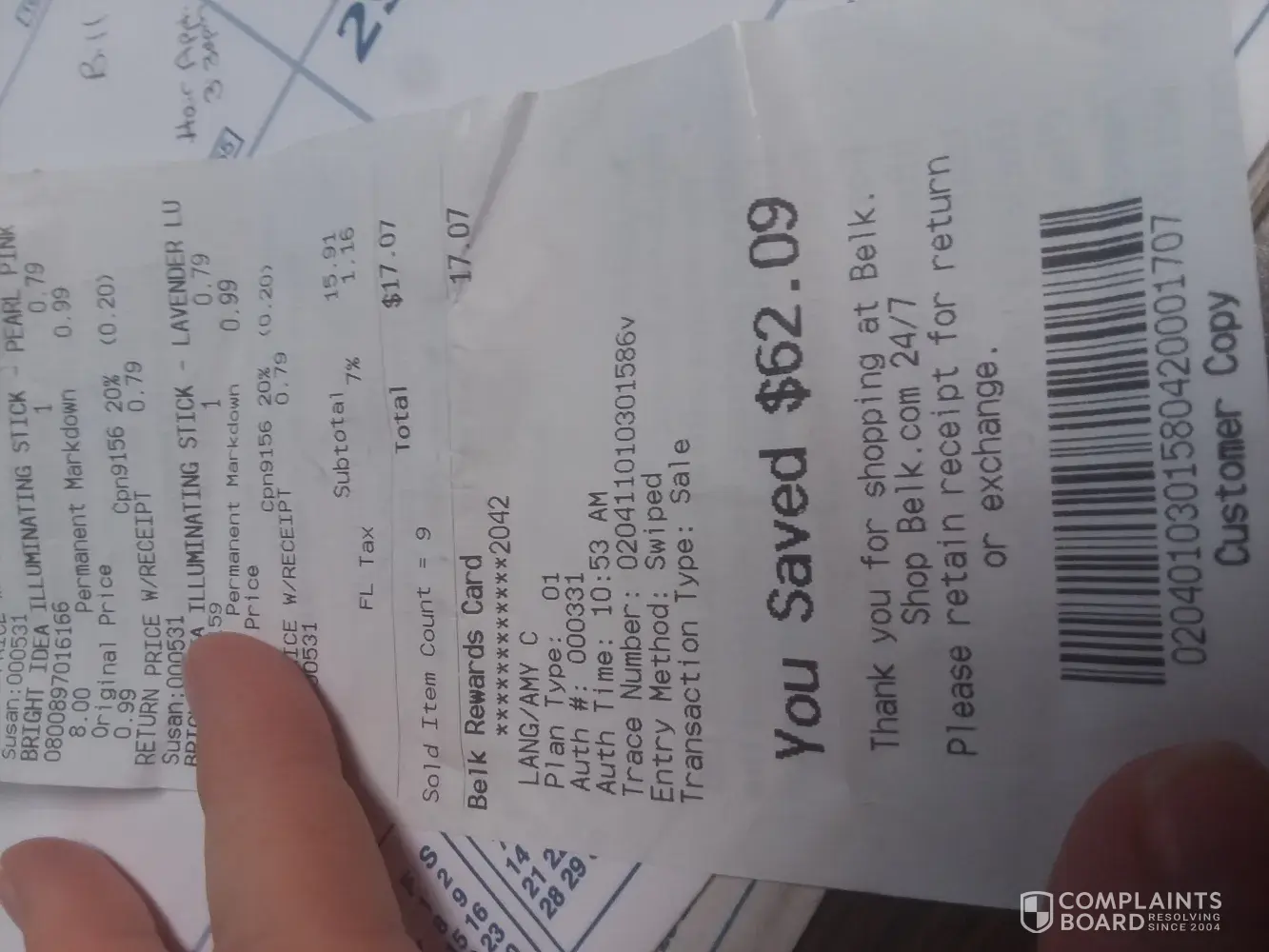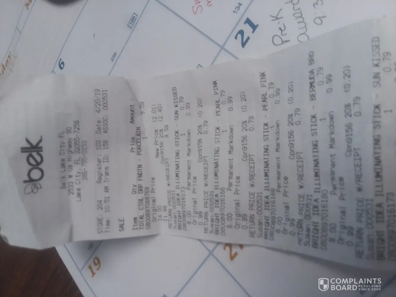 I went into my local belks store and purchased make up that was marked down. I still have my receipt. The assoc #000531. She was very rude to me and treated me like I was very stupid. I had picked up some the store samples that were blacked out. I didn't realize it. It was all together with the actual product for sale.