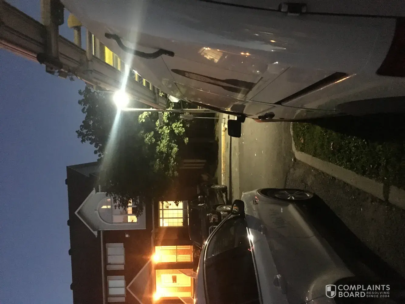 Thursday, September 21, 2017 approximately 7:35 pm a driver was parking on our sidewalk complex (assuming to do a work order for a resident).