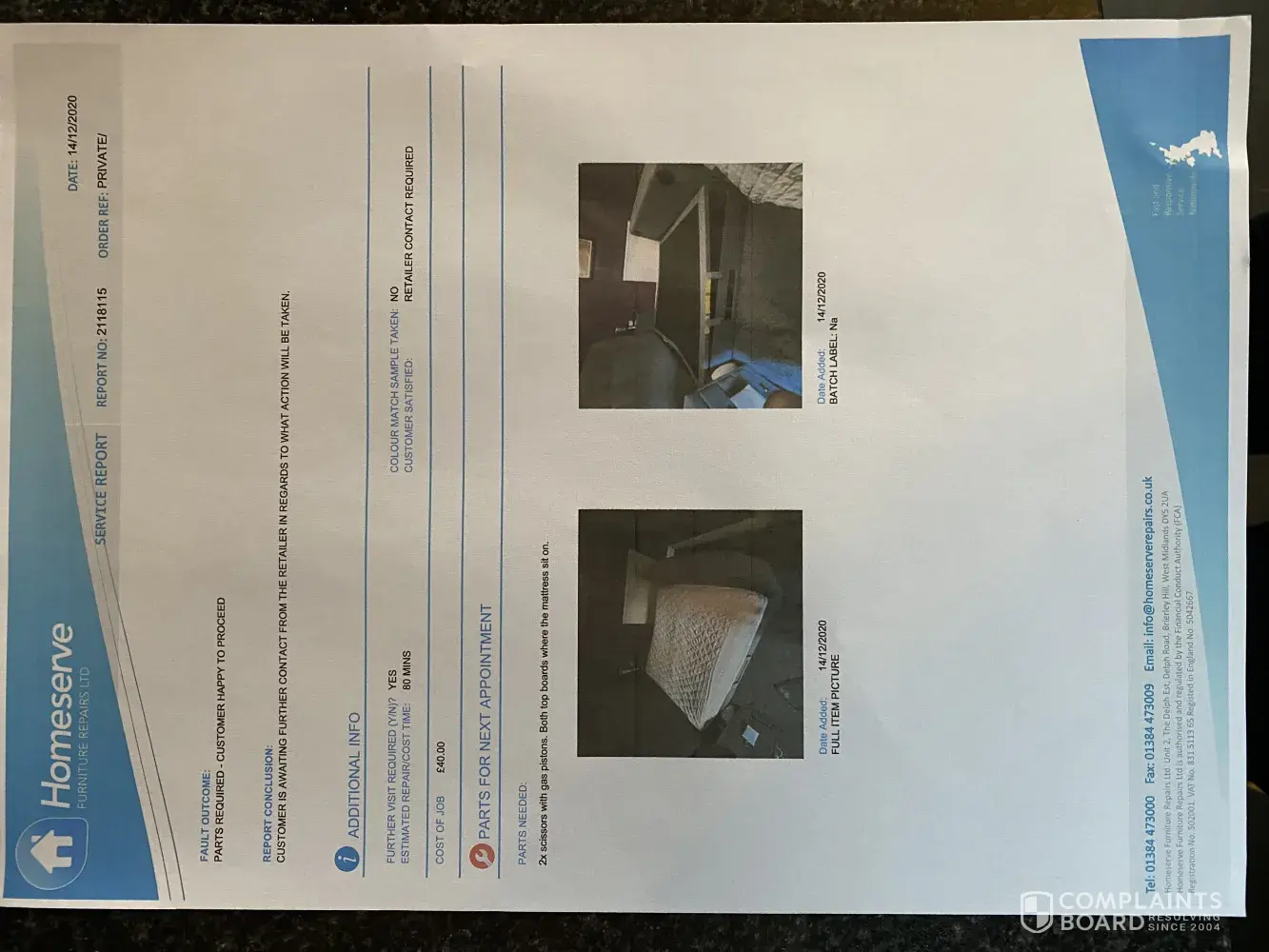 - Fed up with the chasing, tired, frustrated, daughter without a bed and I am out of pocket of £500, unable to purchase another bed, in these times last thing want to stress over.