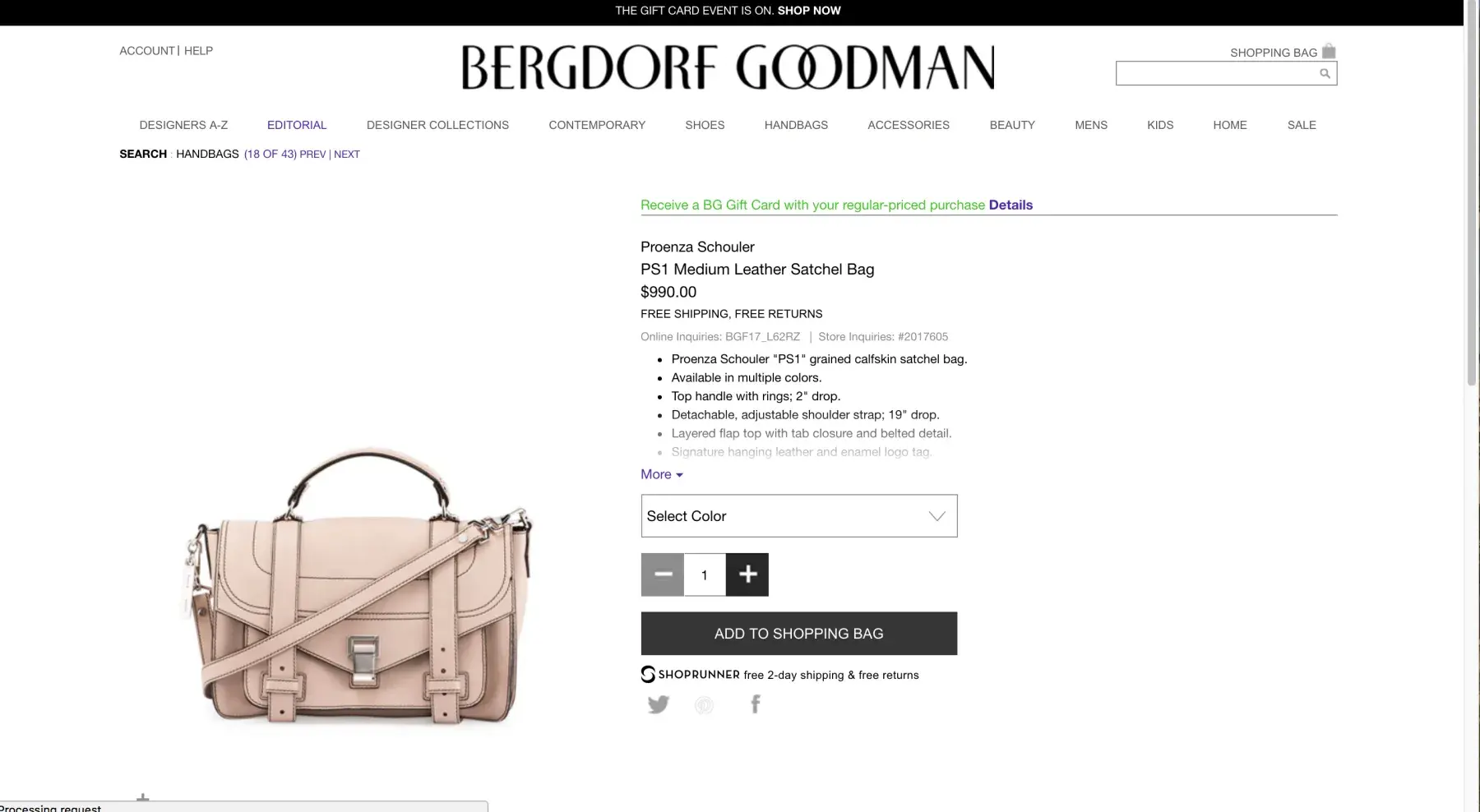 Bergdorf Goodman Online ordering system