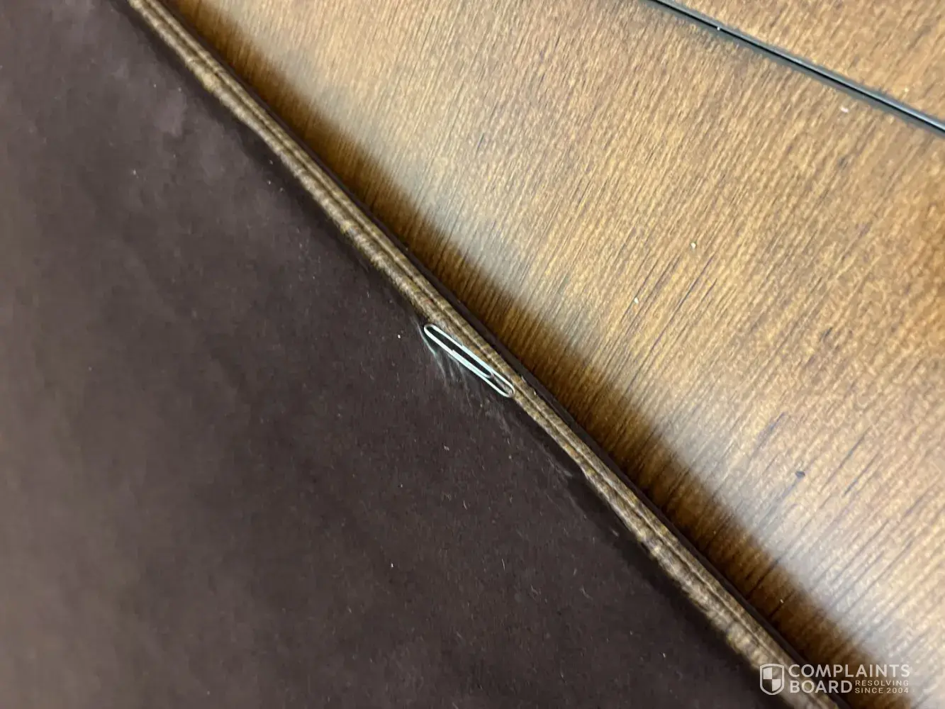 Six months or so after delivery, a house guest noticed a slight flaw as a layer of the pad had pulled apart on an inside corner. We took a picture and sent it to Rob. Quite honestly we just wanted to let them know about it. There was no real damage (unless the whole thing would eventually come apart) but we were expecting them to send us some adhesive or other and lay out a series of steps to make the repair.