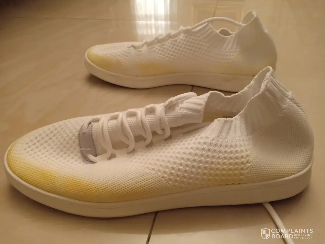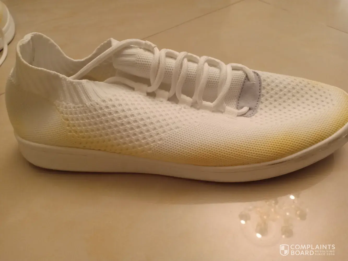 After washing it & drying it in an open air area, a yellow color appeared all over the shoes, I used to wash it again but with same result .