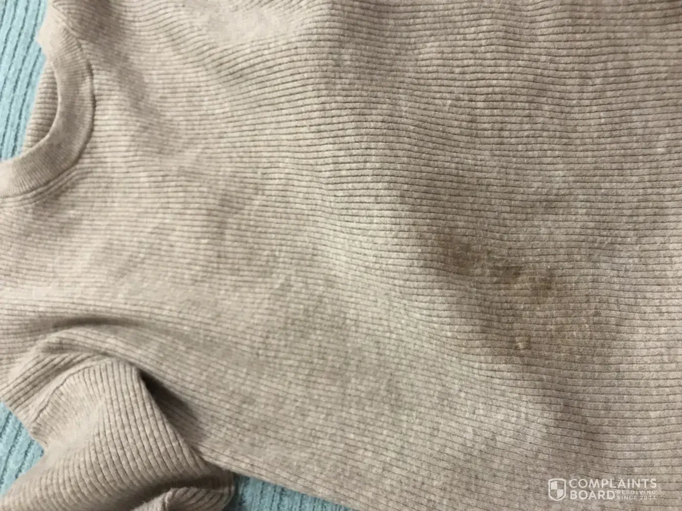 I was talking to the cashier girl whom I have got the purchasing by, she started the conversation with a little bit attacking attitude and serious face, but eventually agreed on the return after I reminded her with the note she wrote on the receipt, on 22.07.19, (dreckig+ riecht nicht gut) which is (dirty because of make up marks and not smell good) and that she and anther nice colleague cashier guy, told me to try to clean it, if it still smells, I should return it, because I have first asked whether this smell is from the material itself or maybe from bad storage conditions... I liked the T-shirt color, I wanted to buy it anyway and give it a try..