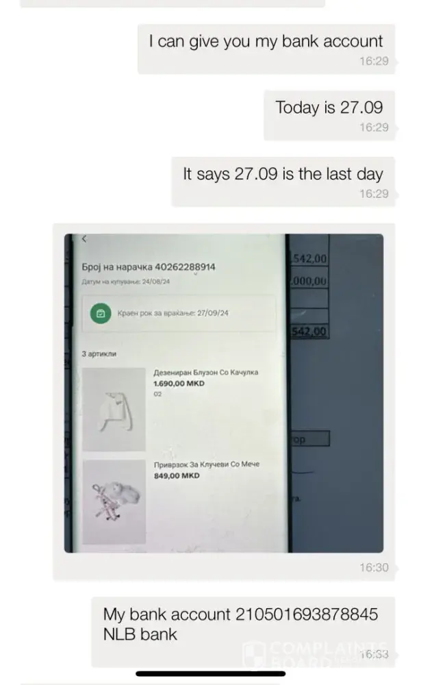 the deadline for returning the order is until 27.09, but the website did not give me the option to create a return