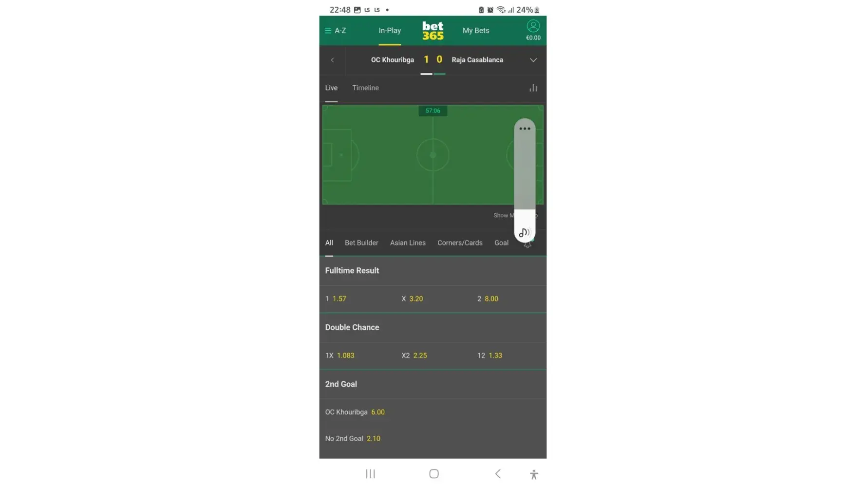 At the match of OC Khurigba Vs Raja Casablanca a goal was scored from Khurigba some moment on the 2nd Half. I was given the chance by the system to do check out. I did and I instantly did a withdrawal to my debit card as well.