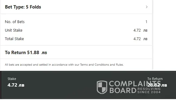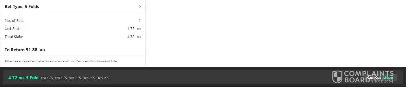 Read full complaintPre-match bet placed with wrong calculation of cash out on live