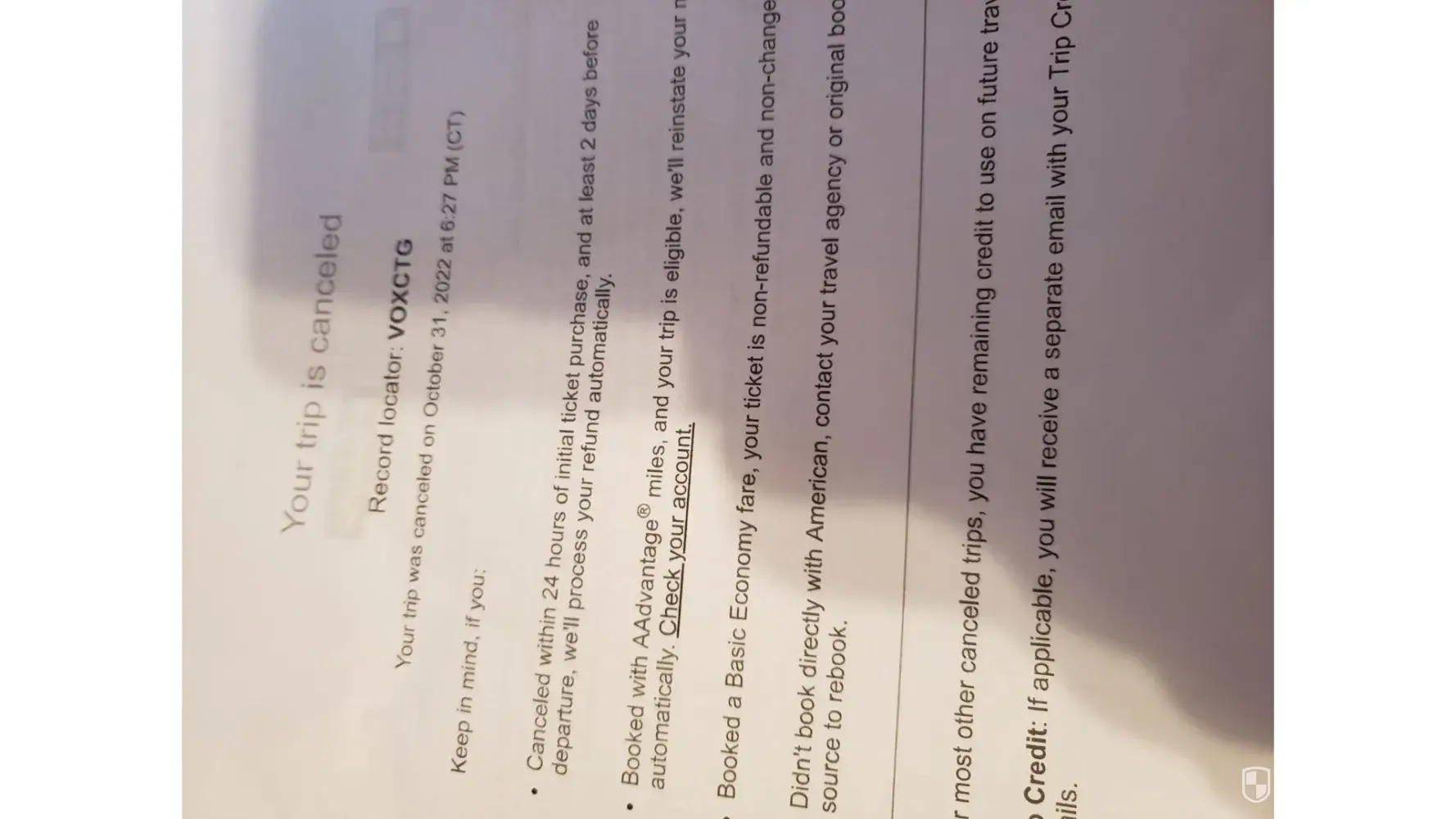 I cancelled a flight for my daughter and grandson on 10-31 and was told my refund is still under review. In the letter confirming the canceled trip it noted they will process my refund automatically