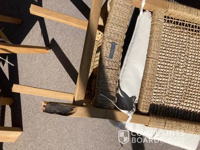 On January 25, 2023, while sitting on the chair at 6:05 pm the leg on the chair gave out and broke off.